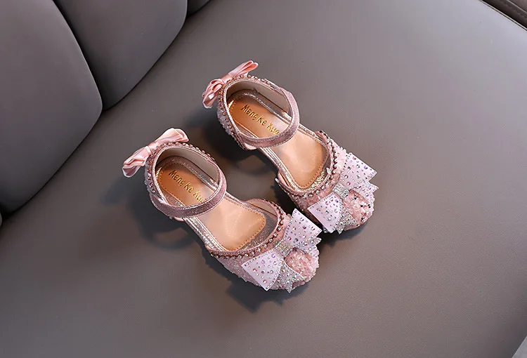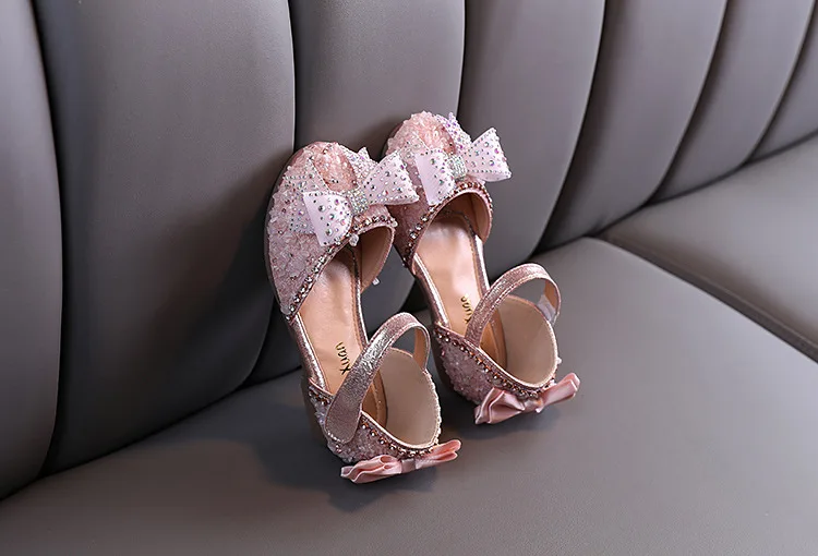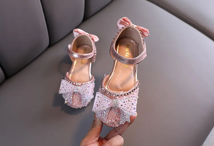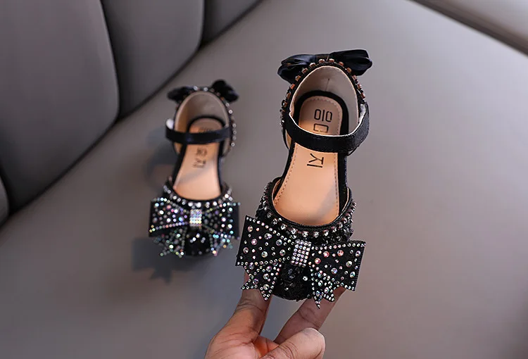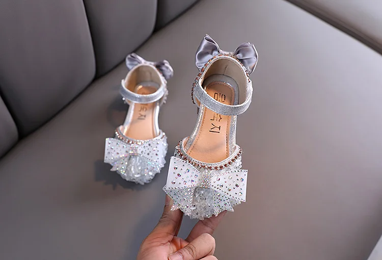 Hot Summer Girls Sandals With Bow Open Toe Diamond Princess Party Shoes