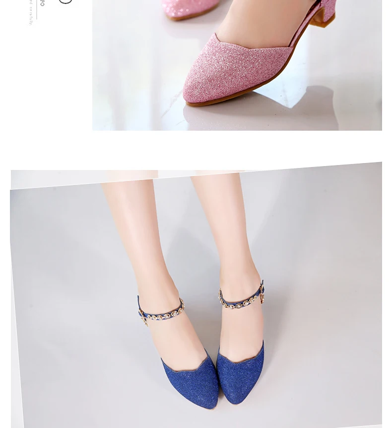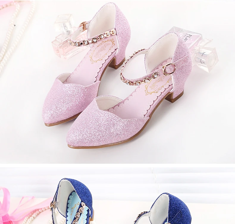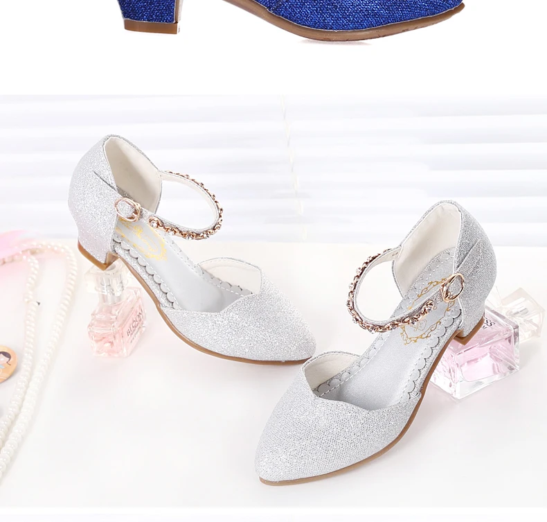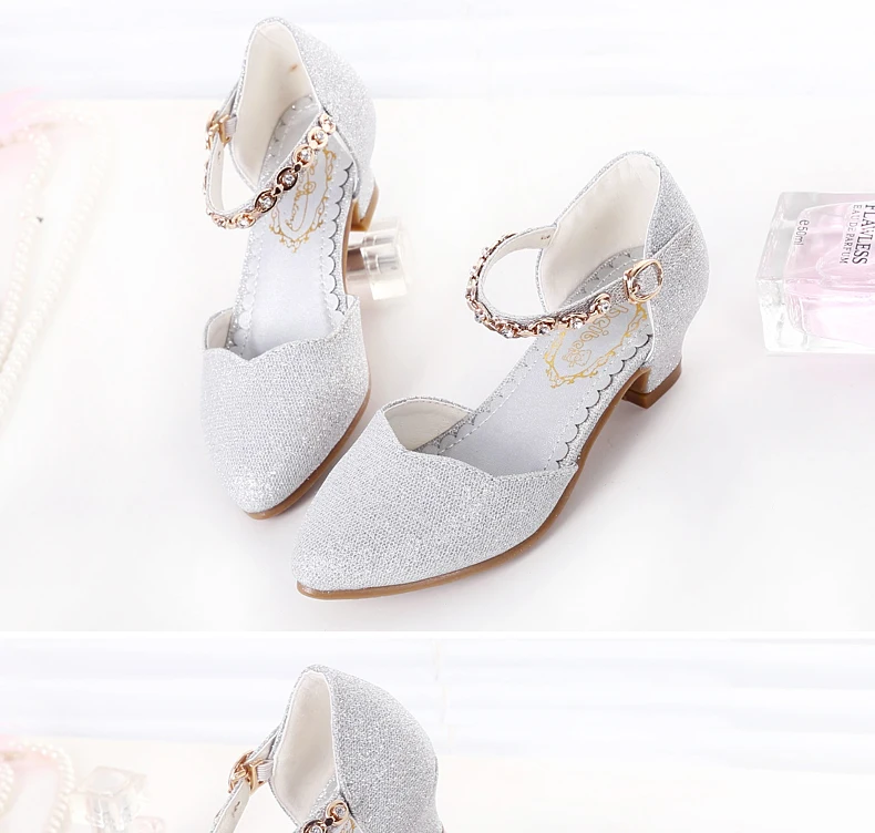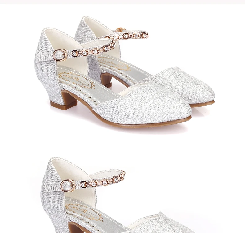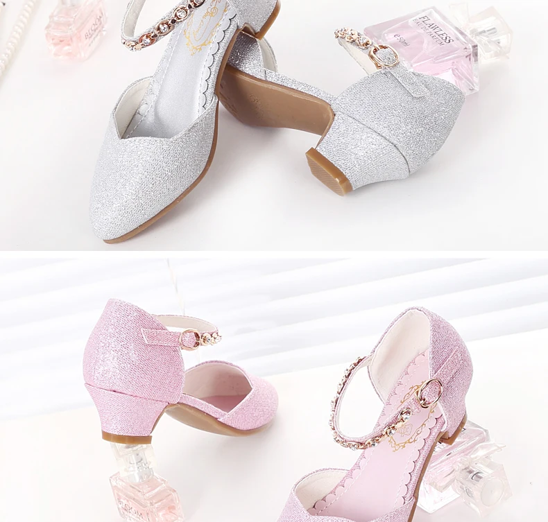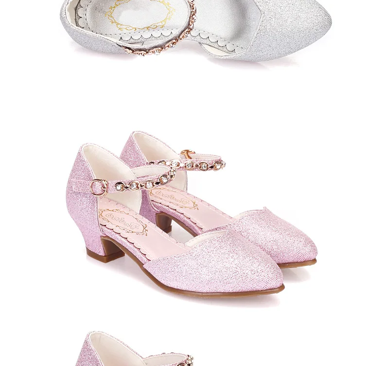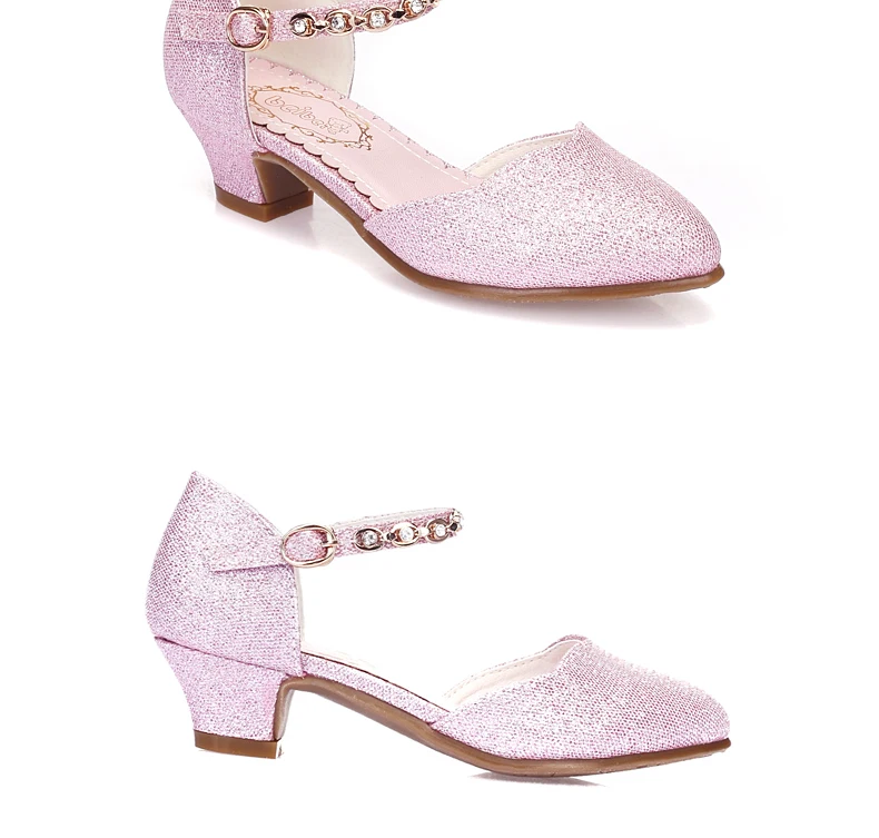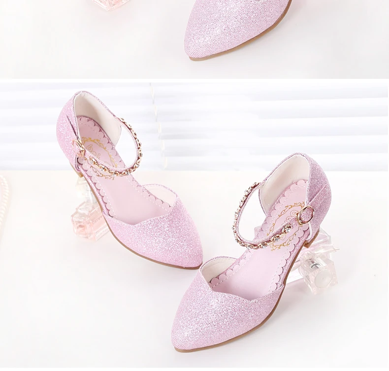 Princess Girls Sandals Kids Shoes For Girls Dress Shoes Little High Heel Glitter
