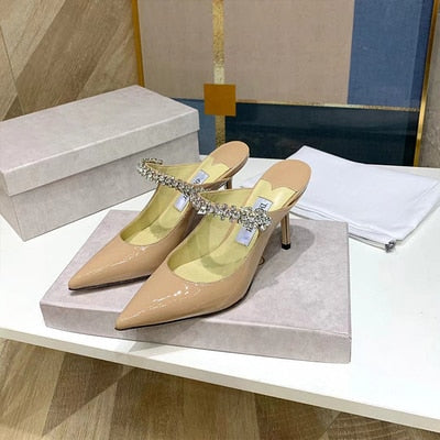 Rhinestone Sandals Women 2021 Summer Sandals Patent Leather